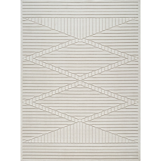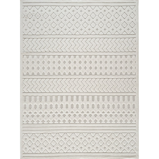 NAOKO Indoor & Outdoor 3D High & Low Pile Textured White Area Rug