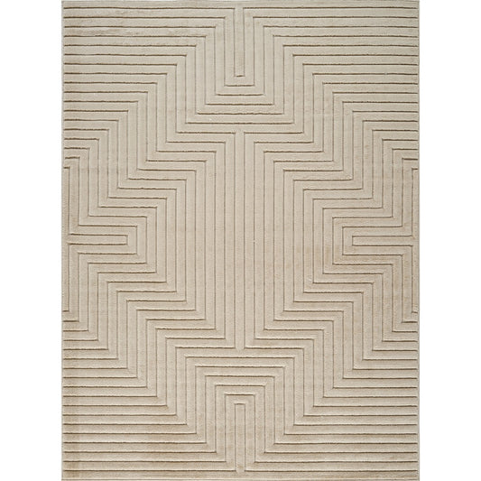 HARUKA Indoor & Outdoor 3D High & Low Pile Textured Beige Area Rug