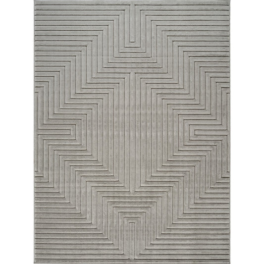 MITSUKO Indoor & Outdoor 3D High & Low Pile Textured Grey Area Rug