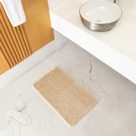 JUNE Machine Washable Non-Slip Beige Bathroom Rug