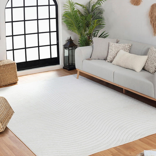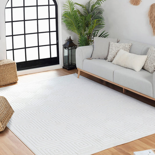 EMIKO Indoor & Outdoor Scandi Modern White Area Rug