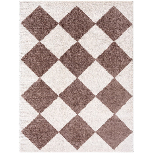 LUCILE Machine Washable Modern Shaggy Dark Brown Area Rug