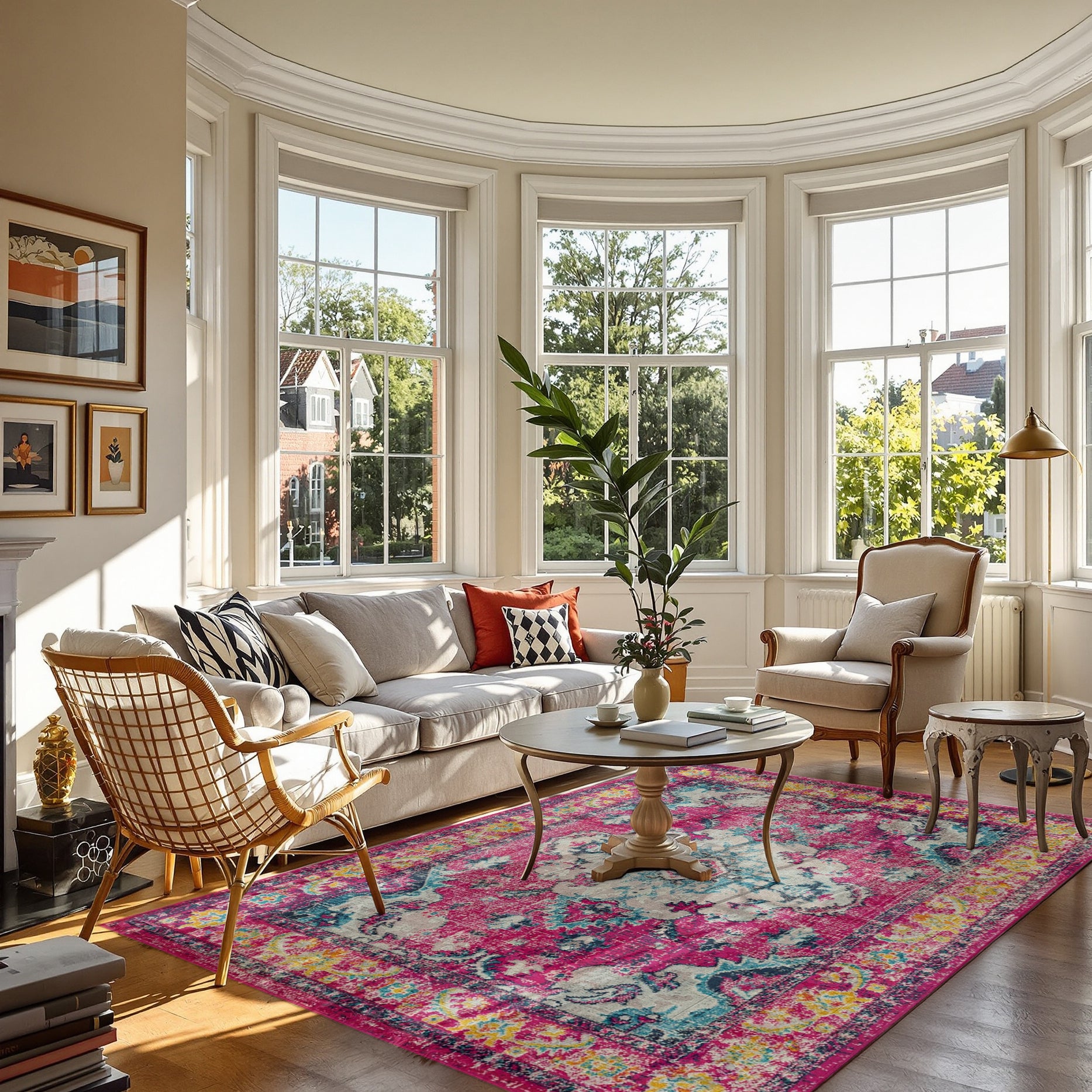 ADITY Vintage Traditional Oriental Boho Bright Pink Area Rug